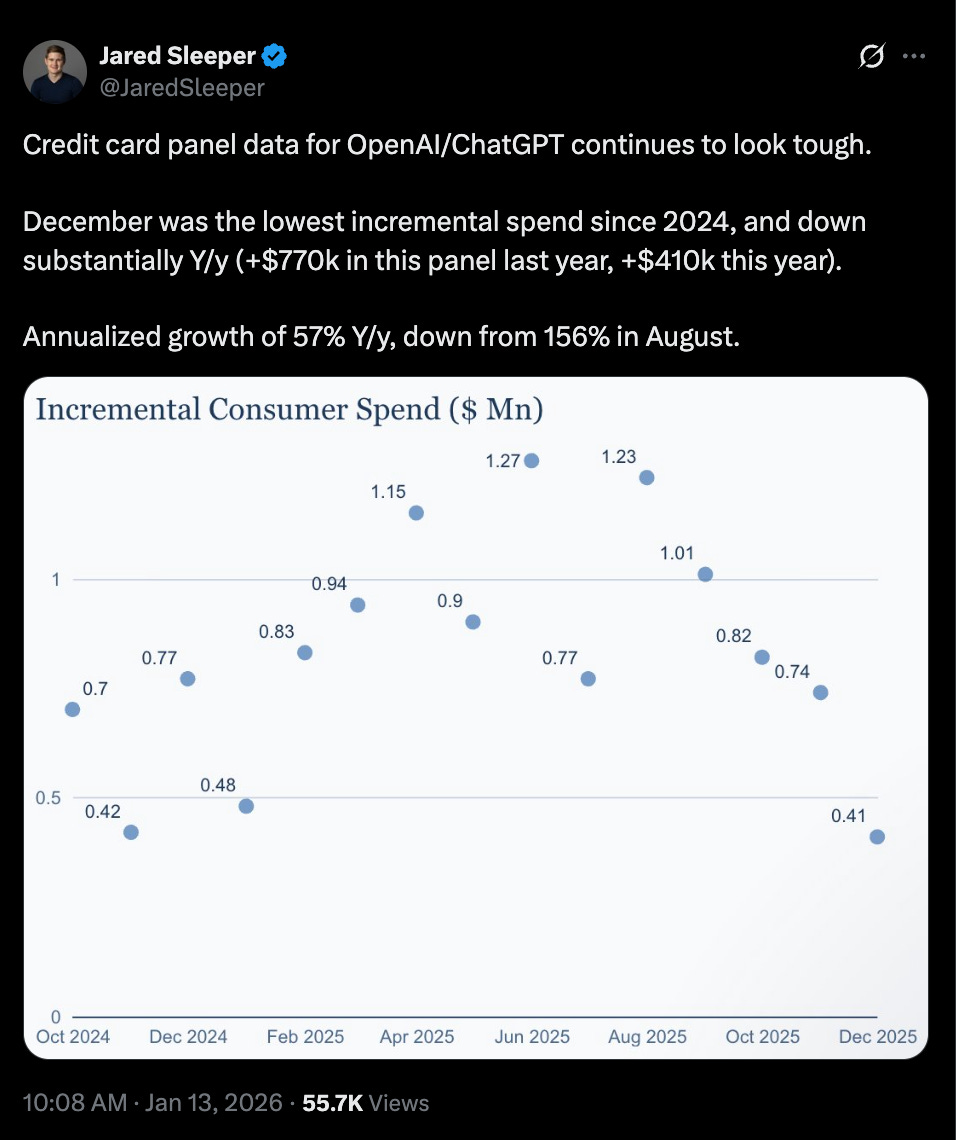 OpenAI Credit Card Spend is Leveling Off, New Data Shows