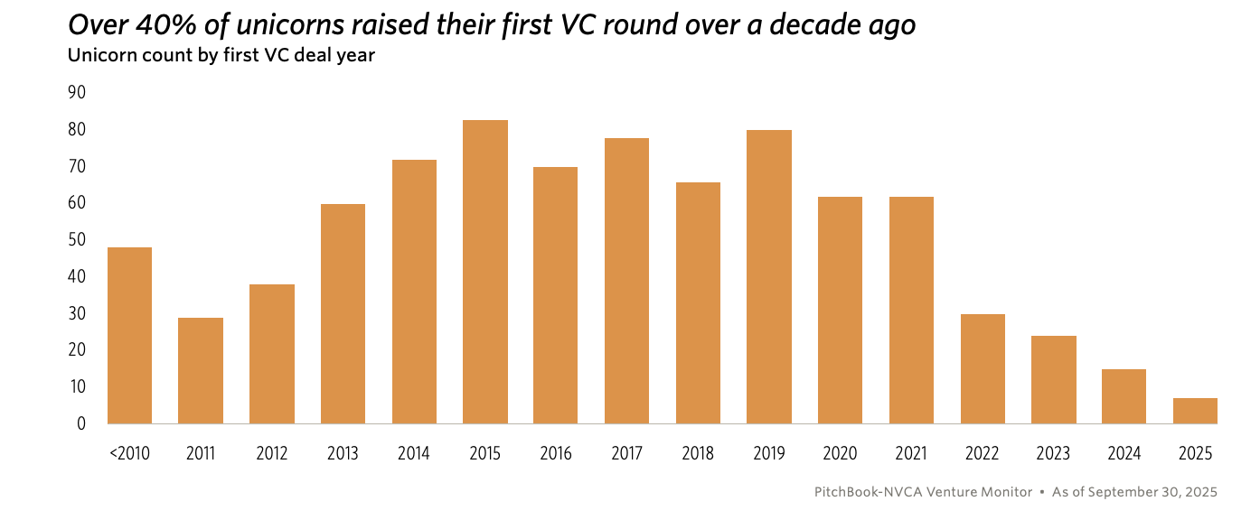 The chart below from the PitchBook and the National Venture Capital Association Q3 2025 report illustrates the dynamic. Over 40% of all venture-backed unicorn startups are more than a decade past their first VC funding round, but still not accessible to most investors. With the rise of secondary market trading, money managers can land handfuls of shares here and there — or they can go big, as Goldman’s asset managers did with this deal.