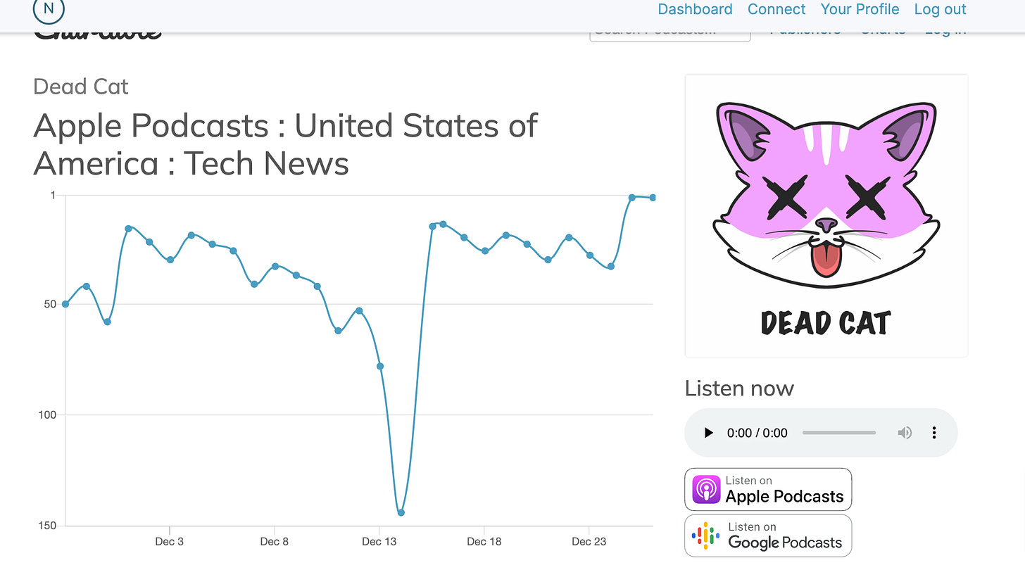 This iteration of the Dead Cat show is going out on a high, apparently ranking number two among tech news shows at this moment.