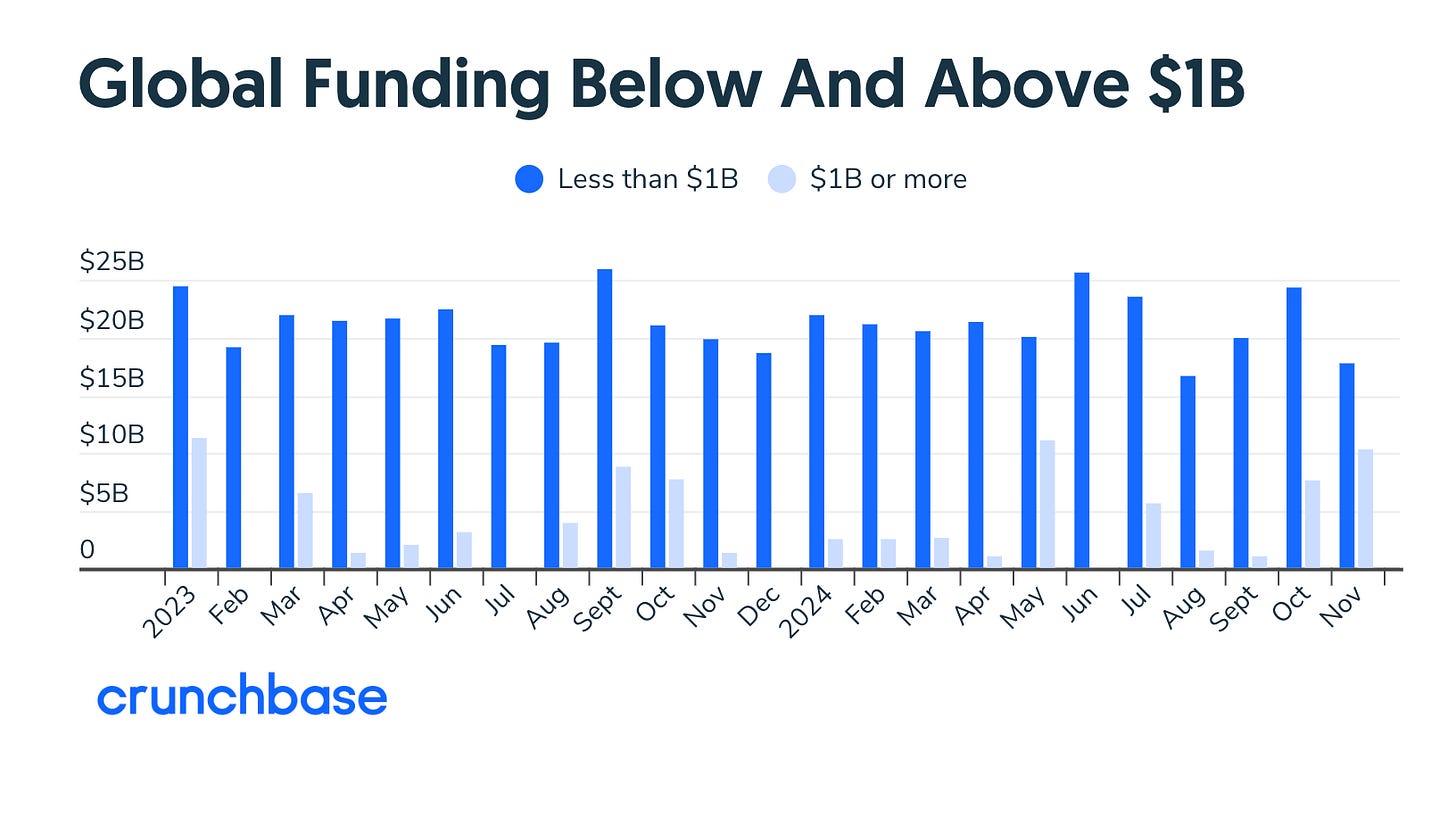 It was a good month to be a startup looking for $1 billion or more. New data from Crunchbase shows that roughly a third of global venture funding in November consisted of 10-figure checks to just three companies: xAI, Anthropic, and the engineering testing firm Tricentis.