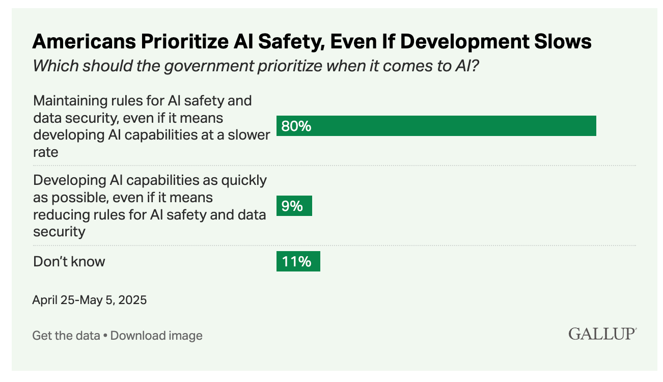 Gallup, September 2025: AI Safety Is Seen as More Important Than Rapid Progress